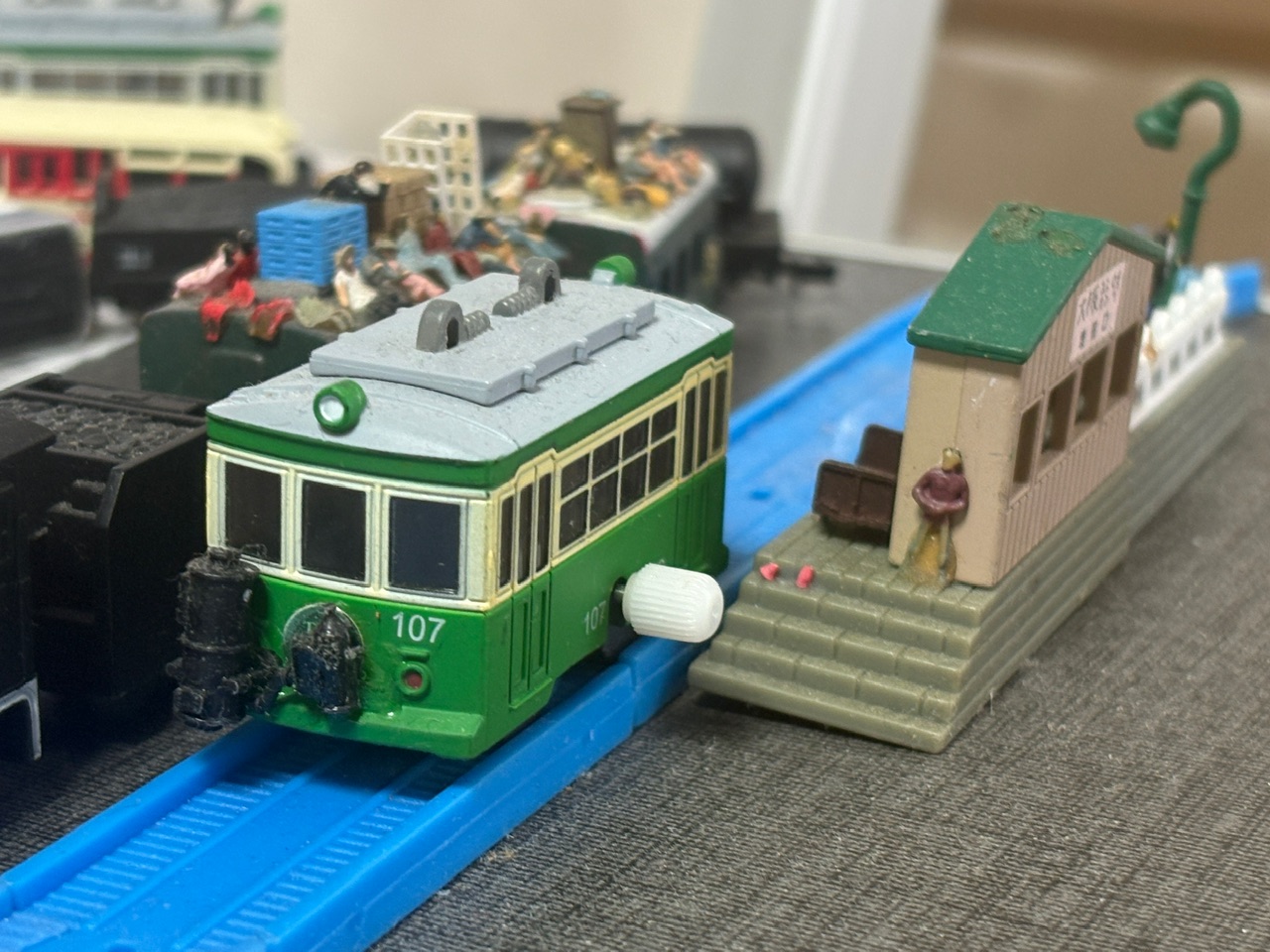 車体の緑色は褪せ、しかし誇らしげに「害吉鉄道」のエンブレムを光らせていた。