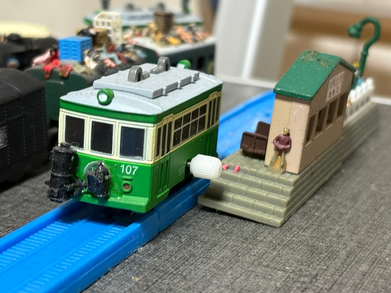 彼らを乗せ、107号は青い線路の上を、ぎこちない音を立てて走り出した。