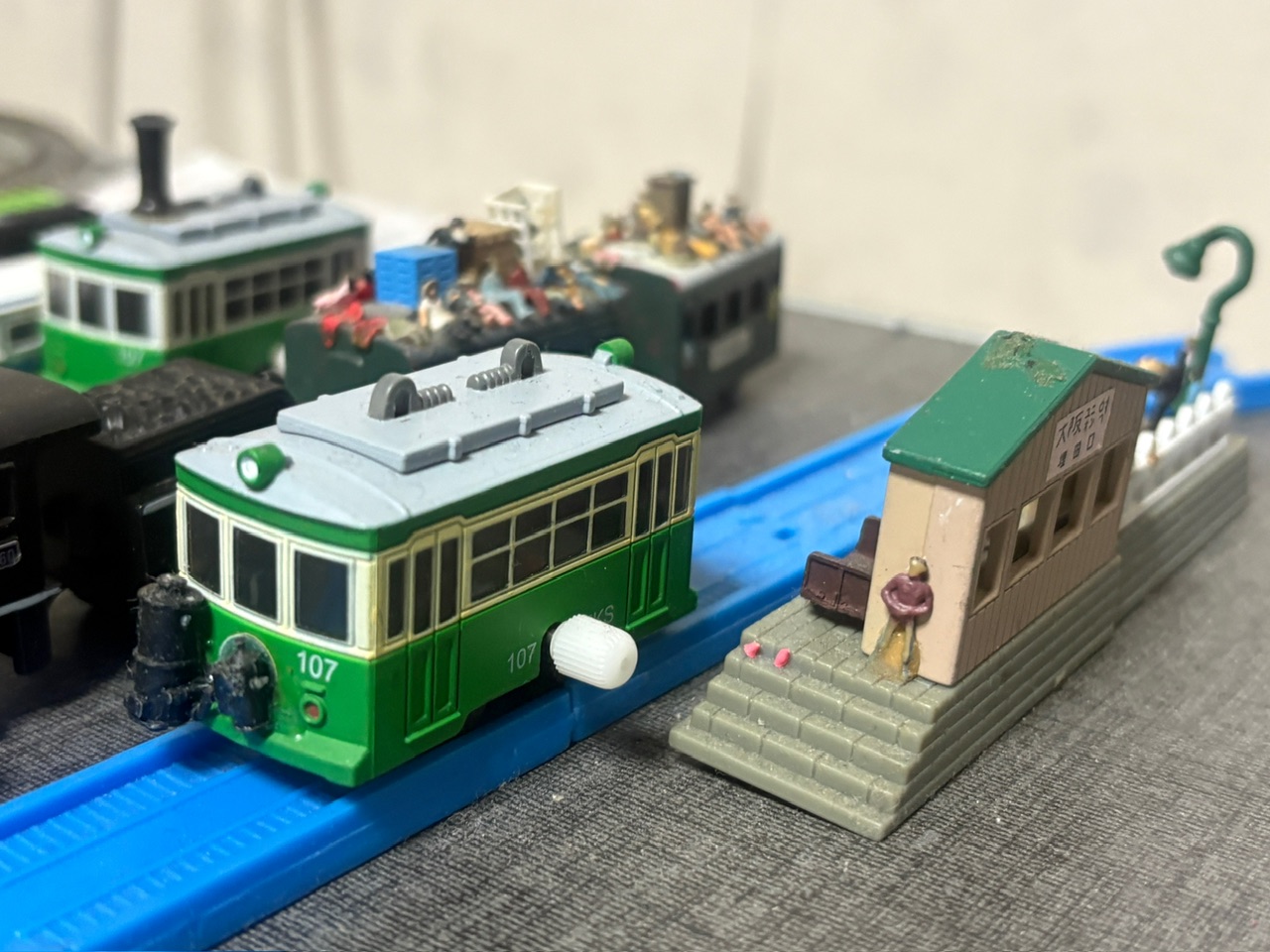 青い軌道の上を、木炭動車はゆっくりと動き出す。