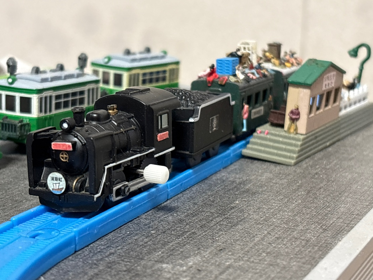 そこへ、黒い蒸気機関車がゆっくりと滑り込んできた。
